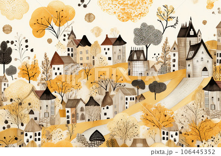 メルヘンチックな花と家・ベージュ基調のやさしい世界