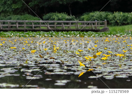 ロマンチック茨城(5~9月にかけ小美玉市やすらぎの里の万寿池ではアサザの黄色い花の群生が見られる。)