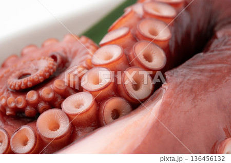 蒸し蛸(ヤナギダコ)の足のクローズアップ