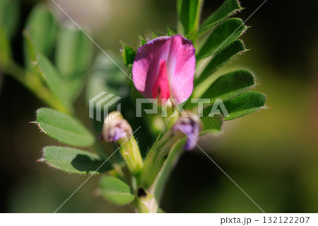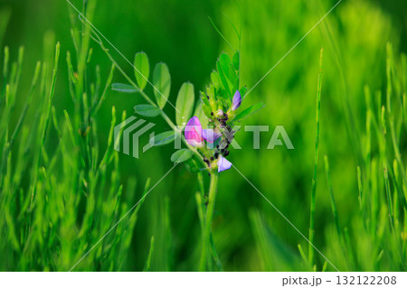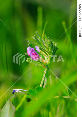 春、野原でピンクに咲くかわいい、カラスノエンドウの花