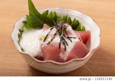 とろろ・山かけごはん・卵のセット 手描き水彩イラスト素材