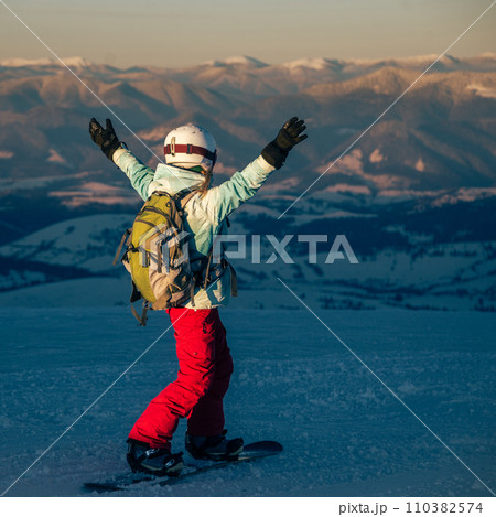 Young woman on the snowboard