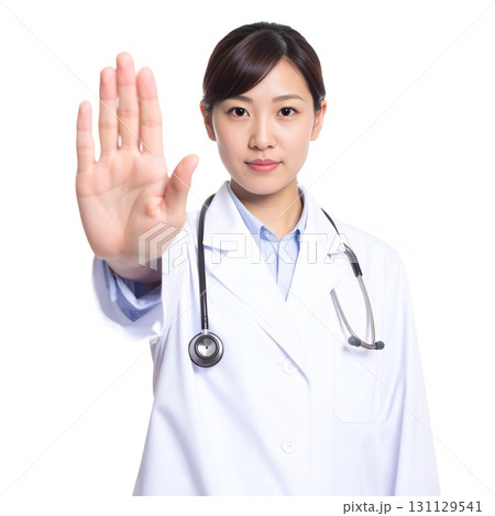 ストップサインを出す若い女性医師