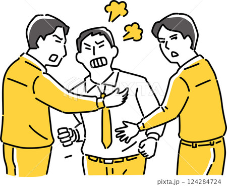 怒る男性をなだめる2人の男性社員
