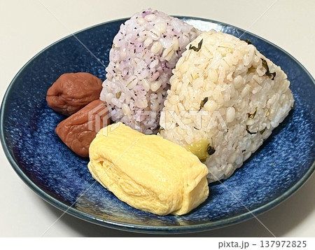 おいしいおにぎりと梅干しと卵焼き