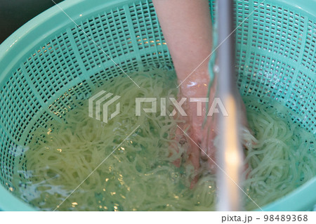 盛岡冷麺の麺をゆがくイメージ画像制作工程の画像 ラーメン飲食店イメージ