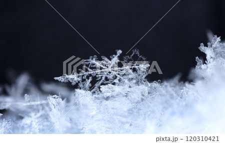 natural snowflakes on snow. the picture is made at a temperature of-10 C