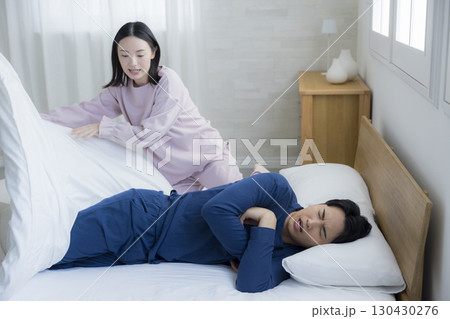 起きない夫を起こす妻