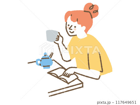 コーヒーを飲みながら本を読んでいる女性_色