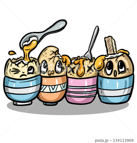Boiled Duck eggs natural cute cartoon hand drawn Food Art illustration.