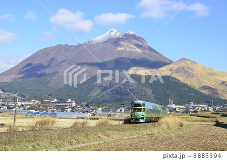 湯布院 由布岳と新緑の田園を走るゆふいんの森
