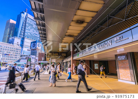 日本の東京都市景観 新橋駅・リニューアルされた銀座口。左奥にはゆりかもめ新橋駅や汐留が見える