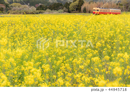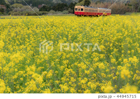 菜の花畑をゆく 小湊鐡道 石神