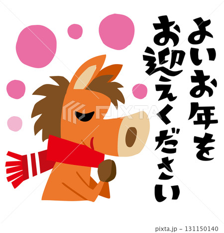手描きのゆるい馬キャラクター(年末、大晦日、よいお年を)