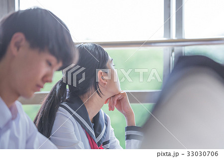教室 授業を受ける女子高生 退屈