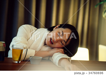 お酒を飲んで酔い潰れる若い日本人女性