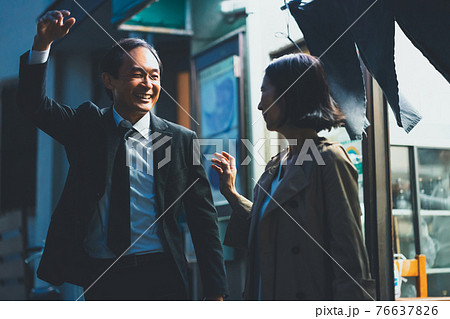 会社帰りに外食する50代男女
