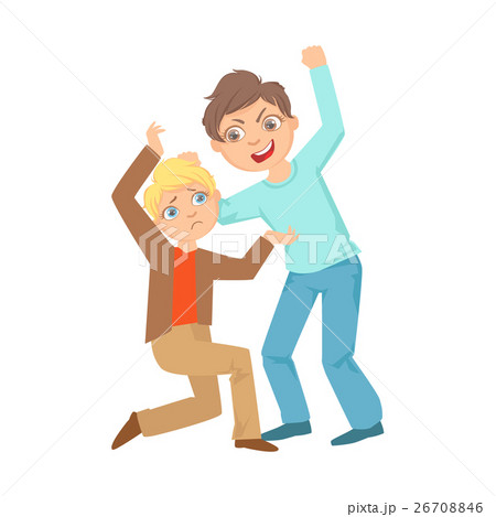 Two Boys Fist Fight Positions, Aggressive Bully In