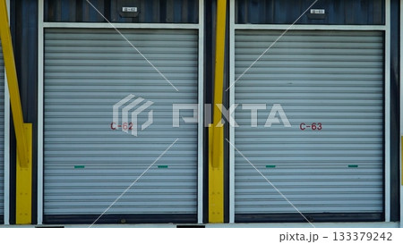 Closed shutters of warehouse