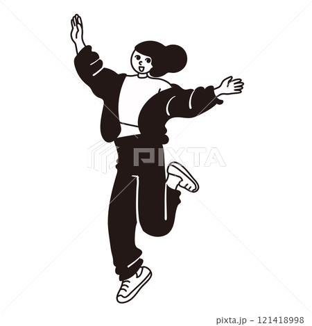 喜んでジャンプする女性ベクター線画