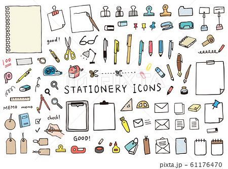 かわいい文具の落書き風線画イラスト素材セット