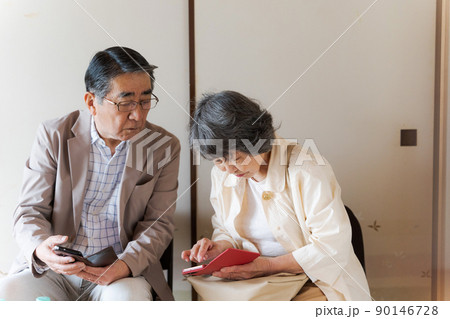 スマホを持つシニア夫婦