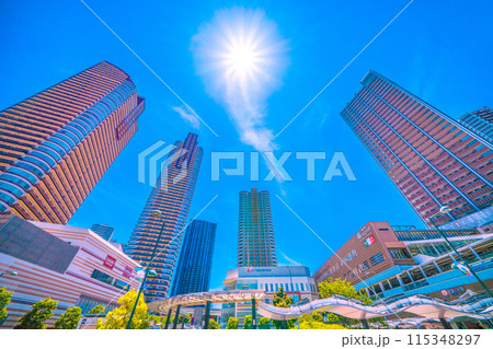 日本の川崎都市景観 真夏のような強い日差し…武蔵小杉駅前のタワマン群などを望む…希望の光…=6月8日