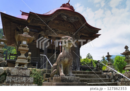 埼玉県秩父郡小鹿野町河原沢の龍頭(りゅうとう)神社 守り神の獅子