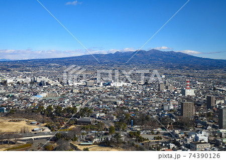 群馬県庁 展望ホールより臨江閣と前橋市中央児童遊園を望む るなぱあく