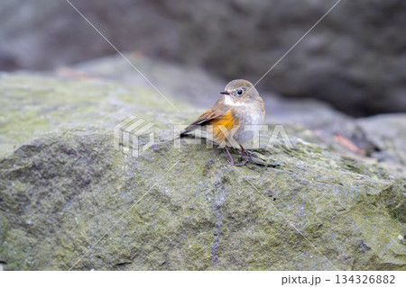 岩の上にとまってあたりの様子を伺っているルリビタキ