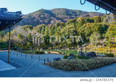 大本山天龍寺(冬季朝)庭園内の大堰川