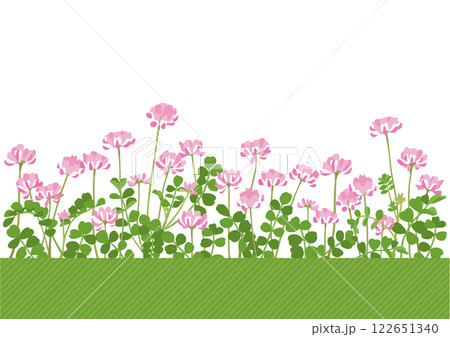 たくさんの花が咲いたれんげ畑 背景イラスト