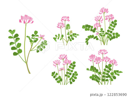 かわいく咲いたレンゲソウのバリエーション イラストセット
