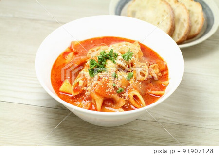 ミネストローネ、イタリア料理の具沢山野菜とパスタのスープ