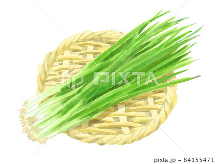 ザルにのった万能ネギとわけぎのイラストセット