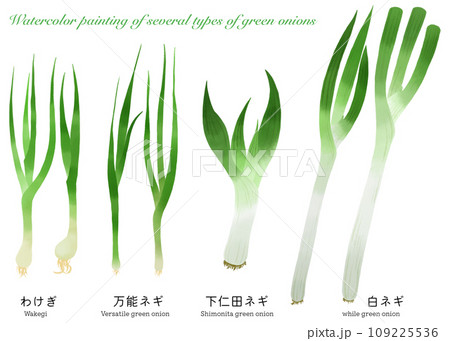 水彩で描いたネギとわけぎのイラストセット