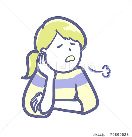 肘をボリボリ脱力感たっぷりにため息をつく女性