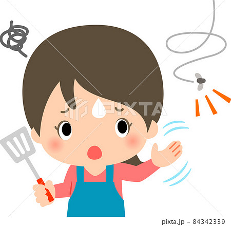 ハエを追い払う料理中の女性