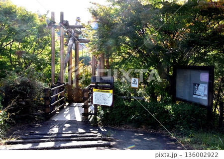 神奈川県 小田原こどもの森公園わんぱくらんどのわんぱく大橋入口と紅葉