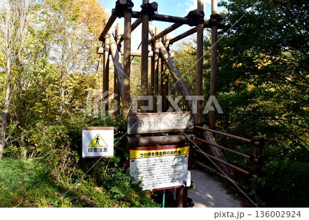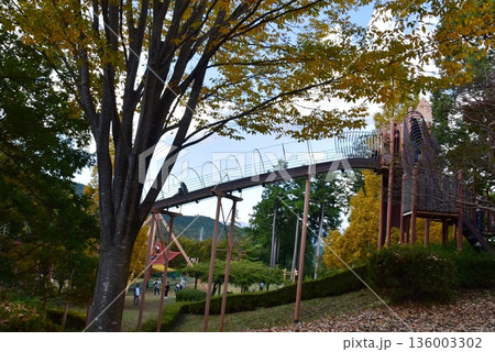 神奈川県 小田原こどもの森公園わんぱくらんどのわんぱく大橋と紅葉