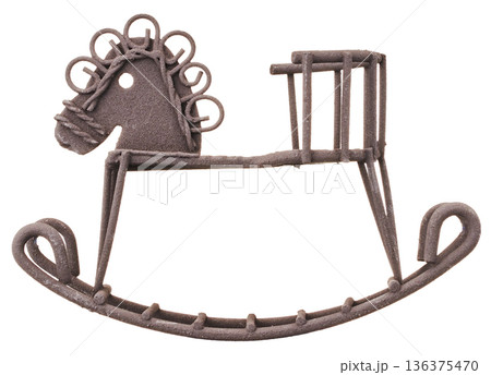 白背景に切り抜かれたアンティーク風の茶色の木馬(アイアンオブジェ)