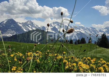 グリンデルワルトの牧草地から ベルナーアルプスの山々を望む グリンデルワルト スイス