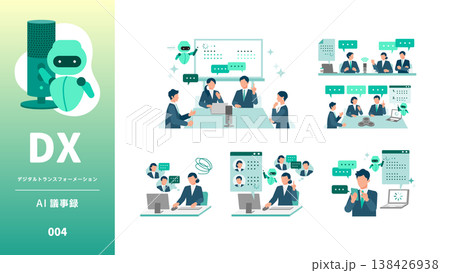 DX デジタルトランスフォーメーションを推進する社会のイラスト 議事録AI
