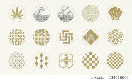 金色の和模様が並ぶミニマルな和柄アイコンセット