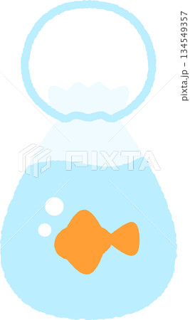 手書き風のシンプルアイコンイラスト 金魚と金魚すくい用袋