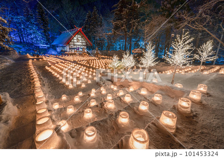北海道 札幌市 定山渓神社 雪道路 イベント 祭事 雪 冬 アイスキャンドル「