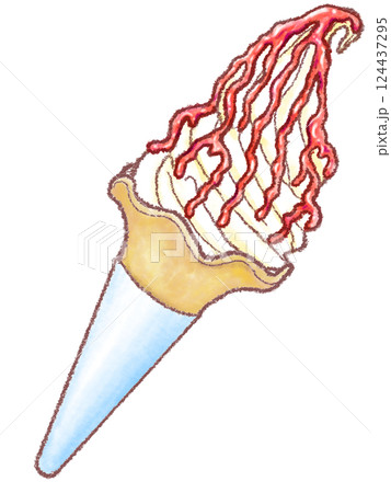 ソフトクリーム_バニラ_苺シロップ_フラワーコーン