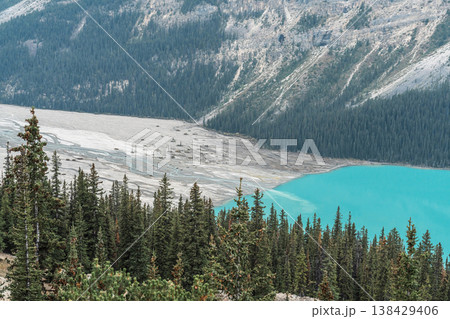 ペイトー湖のターコイズブルーと氷河の堆積デルタ|カナディアンロッキーの絶景