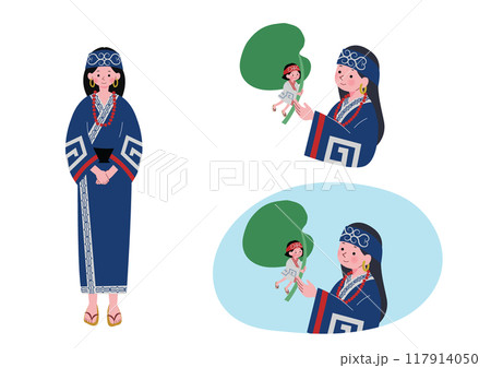 アイヌ イラスト 全身 セット素材 女性