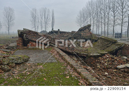 ビルケナウ第二強制収容所の破壊されたガス室「クレマトリウム」
